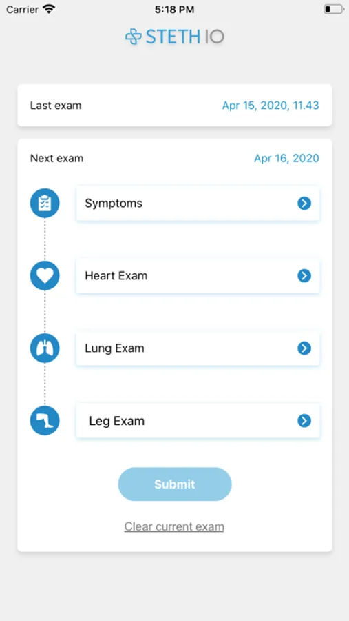 Steth IO Telehealth allows your smartphone to be used for remote physiological monitoring (RPM) and telemedicine when used with Steth IO hardware. Steth IO is a Class II FDA-Cleared device with the following indication for use: The StratoScientific Steth IO Stethoscope and Phonocardiogram Model 1.0 is intended for medical diagnostic purposes only. It may be used for the detection and amplification of sounds from the heart, and lungs with the use of selective frequency ranges. It has been tested for use on adults undergoing a physical assessment.
