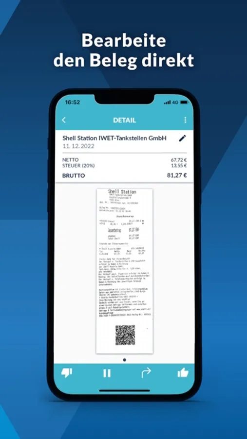 Travel expenses: You are on a business trip and take a photo of the invoice - and your travel expenses are submitted.