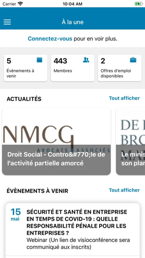 Elle permet d'accéder facilement aux principaux services de notre site internet : actualités, consultation de l'annuaire des membres, mise à jour de votre profil, accès à l'agenda des événements et aux offres d'emploi...