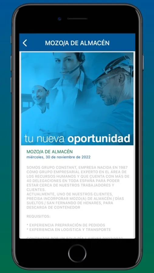 Grupo Constant. le permitirá registrarse en las últimas ofertas de empleo publicadas en el mundo del trabajo temporal.