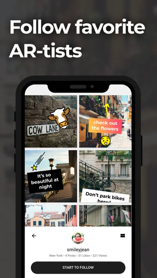 3. Create your own posts. Just tap on "Add Posts", capture some background, and let your imagination run wild using drawing, text, and smiles. Your post will be anchored to the real place.