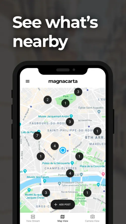 Welcome to our first release of the new social network Magna Carta AR. Magna Carta AR is an augmented reality app that lets people communicate with one another in the AR world. Create a post and share your experience with others. Become a creator of street art and showcase your skills. Or, leave notices about favorite locations. Like this place? Put a smile on it. Just snap a photo and start building your post. Others will see your result in the AR world at the locations where the content was created. Cool!