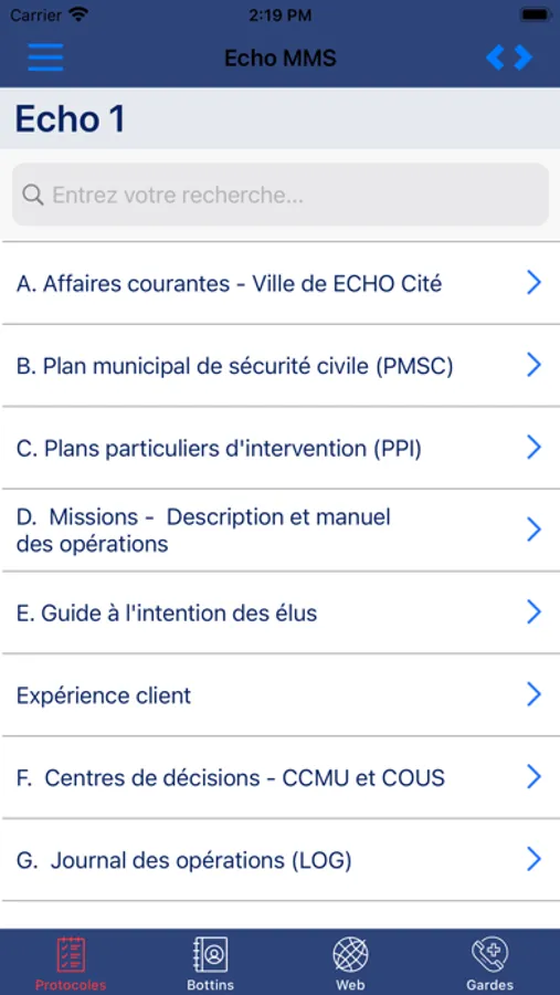 IdSide id.écho donne un accès instantané à vos bottins et protocoles d’intervention. Même hors-connexion, vous pouvez assurer vos gardes et vos services de veille en sécurité civile, en mesures d’urgence, en informatique, en suivis clinico-administratif, etc…