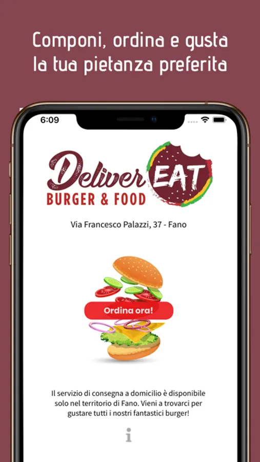 DeliverEAT è un servizio di ristorazione a domicilio. Nei nostri menù proponiamo Hamburger, Fritti, Primi piatti, Insalatone e Dessert. Tutti i nostri prodotti sono realizzati con materie prime di qualità, biologiche e a km0. Hamburger gourmet con diverse specialità di homemade bun, il tutto servito grazie anche alla nostra nuova app. DeliverEAT mette a disposizione anche una vasta selezione di birre da ordinare insieme ai vostri panini.