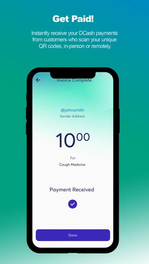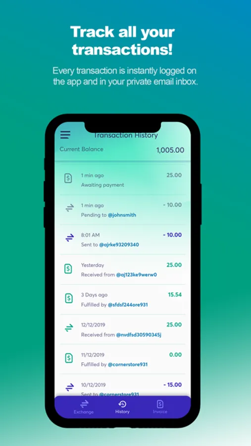 Scan to pay or get paid without touching another person or foreign object. Every transaction is logged in the app and in your private email.