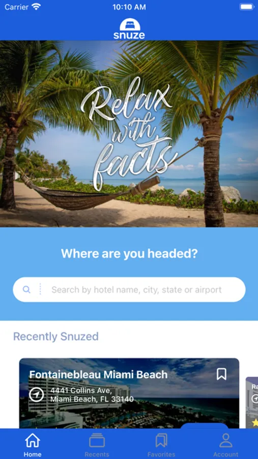 It’s your best travel guide with honest and more accurate hotel reviews! If you want efficiency, we are the travel app you’ve been looking for. Snuze is here to help you become a more informed traveler. Eliminate the long-winded comments and crazy rants that drag on in other travel apps and get what you’re really looking for - finding a hotel that has what you need. Travel more efficiently with our 3 level rating system that scores the most important amenities in a hotel or motel. Every hotel’s amenities will be rated by people who have visited the hotel which will make skimming through reviews much easier. Most of us traveling want to spend more time focusing on the trip and less on lodging. This is exactly what the best hotel apps should be focusing on! If you are someone looking for more details and comments you can take it a step further and join the Snuze Room! The Snuze Room is designed to give you an even better idea of a hotel’s reputation by talking with real travelers that can give you their hotel recommendations. Engaging with others to get real, accurate information is what we want for you. With Snuze, you can take the guessing game out of choosing between hotels. You get to know the quality of the things you like about a hotel so you know what to expect upon arrival.