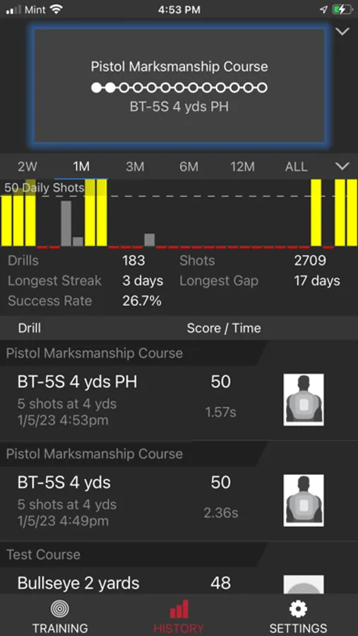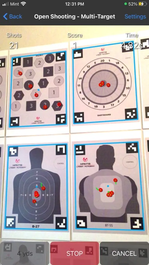 The Mantis Laser Academy app has a variety of drills focused on different aspects of shooting. Some drills require specific smart targets. Other drills work with any smart target. Several drills support multiple targets and allow local competition between shooters.