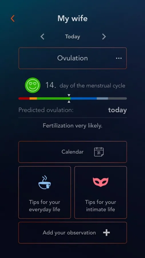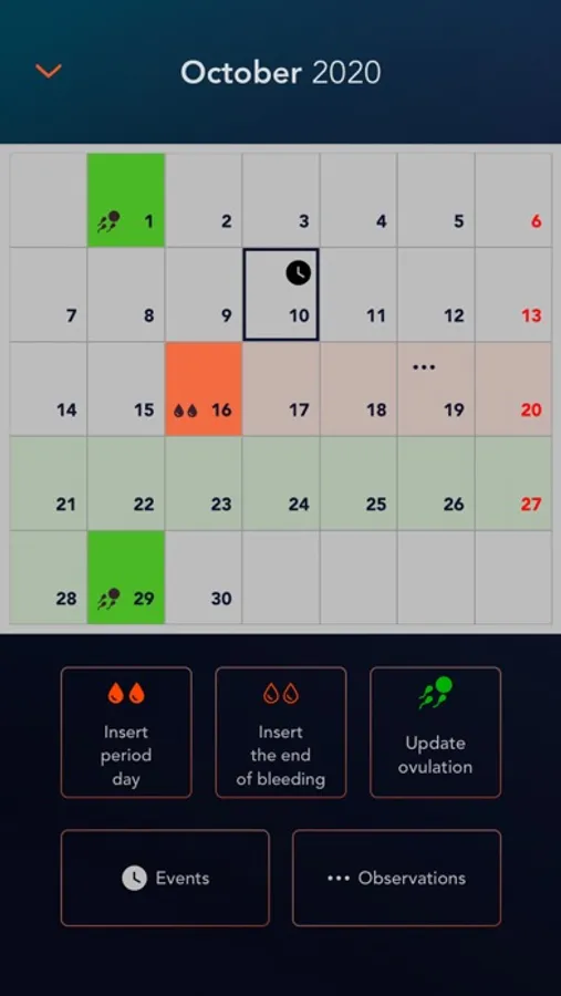- Simple graphic calendar of a woman's cycle with the possibility of forecasting many months ahead;