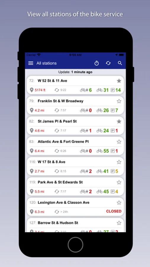 Unofficial app to view detailed information about the stations of the Citi Bike rental service in New York.