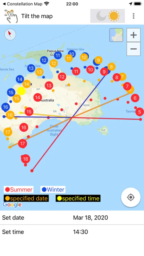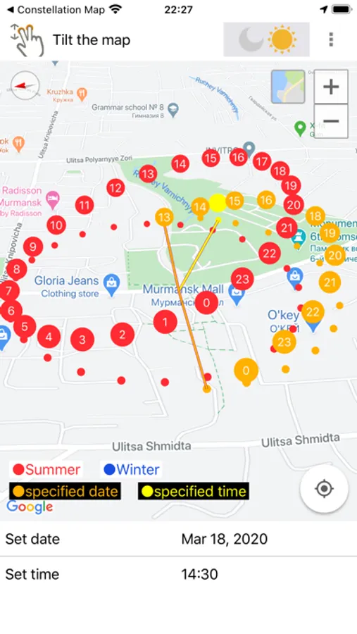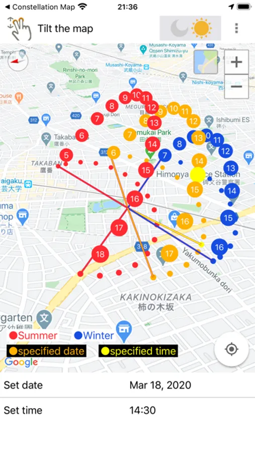 You can also go to any places on GoogleMap and display the sun's trajectory in that place in 3D.