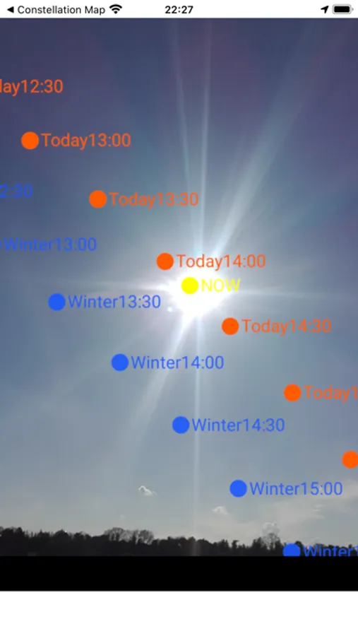Point the device to the sky, this application will display the position of the sun over the camera image like the AR.