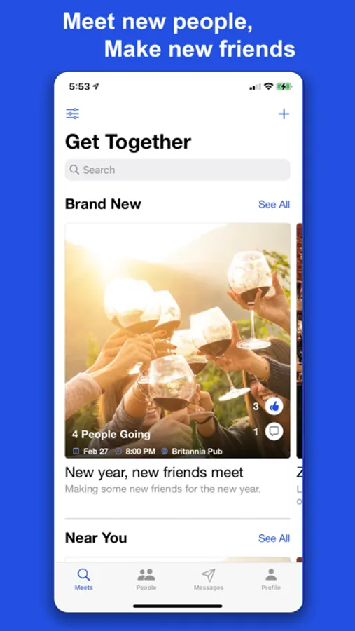 Search meets and discover people near you to get together and socialize with those in your community. Or maintain a circle of friends you already have with private meetups.