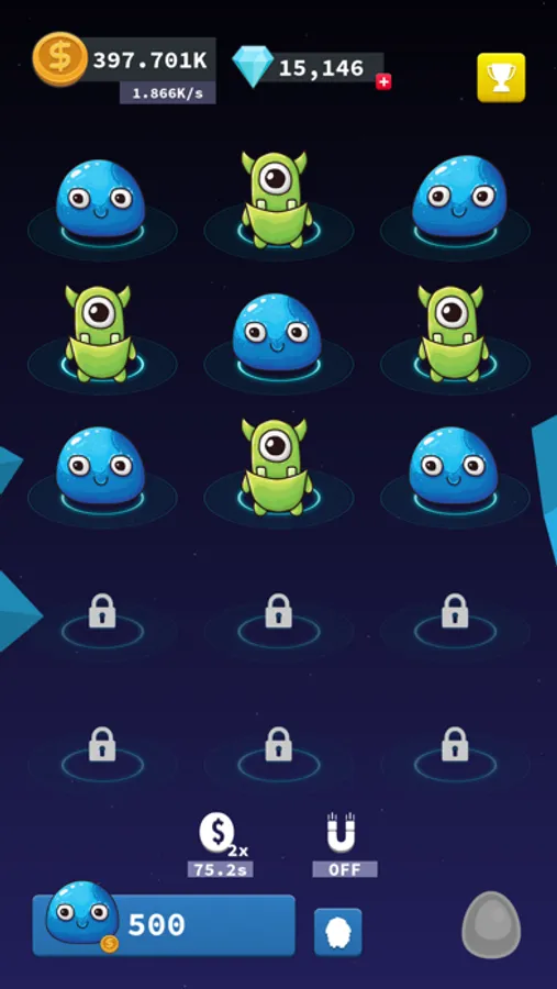A new kind of pet has been discovered! The Monstars! You can grow them and merge similar monsters to make a new one. The more evolved a Monstar is more coins you will earn.