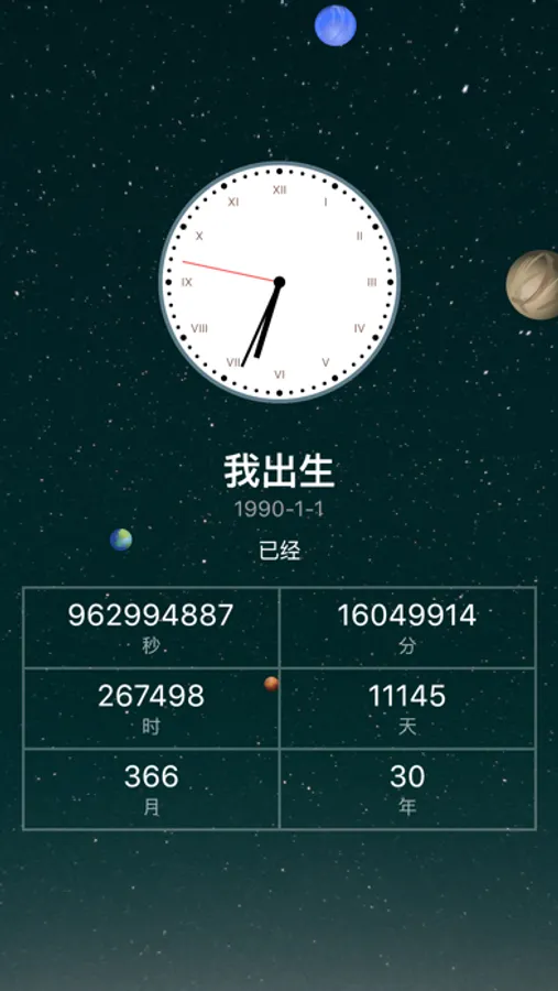 When you set your birthday, the APP can estimate the time you live, the data is accurate, and the atmosphere is cool.