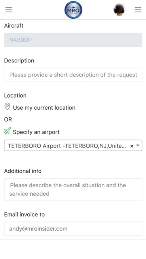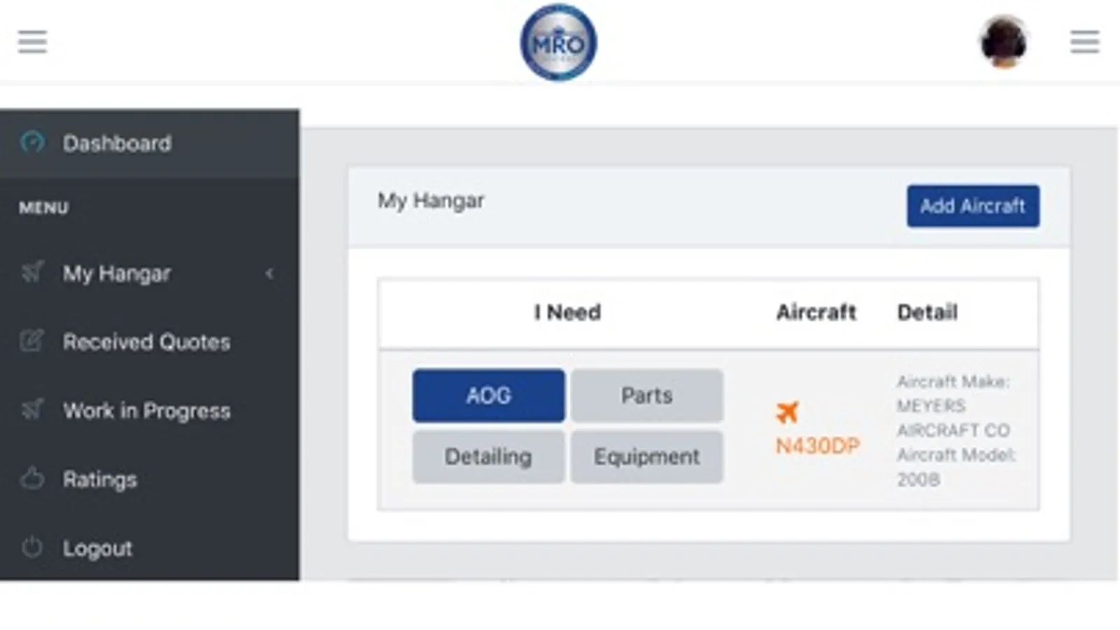 Quickly search for AOG, detailing, parts, and equipment rental on one platform. Ping nearby service providers without picking up the phone. No markups, no finders fees, no hidden transaction costs. MRO Insider - Innovation. Efficiency. Delivered.