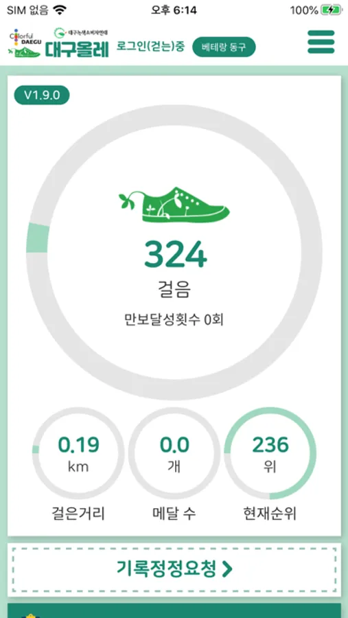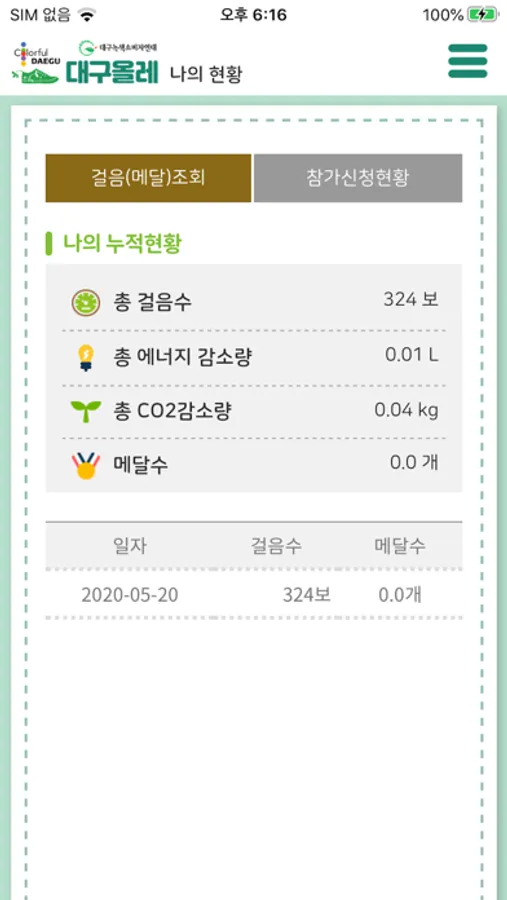 - 매일 5,000보씩 걸을 때 마다 대구올레 메달을 0.5개씩 획득하실 수 있습니다.