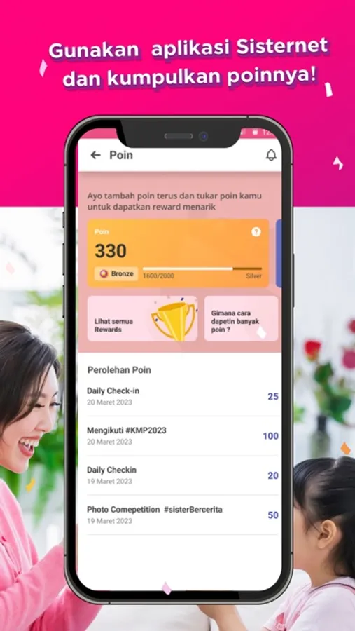 + Notifikasi : Cek semua activity terbaru dalam aplikasi Sisternet di sini.