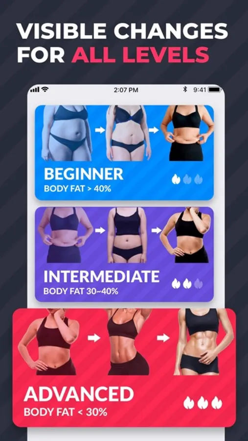 Designed by professional fitness coach, it has 4 levels for everyone, both beginner and pro. Different fat burning workouts every day, you can easily stick to it.