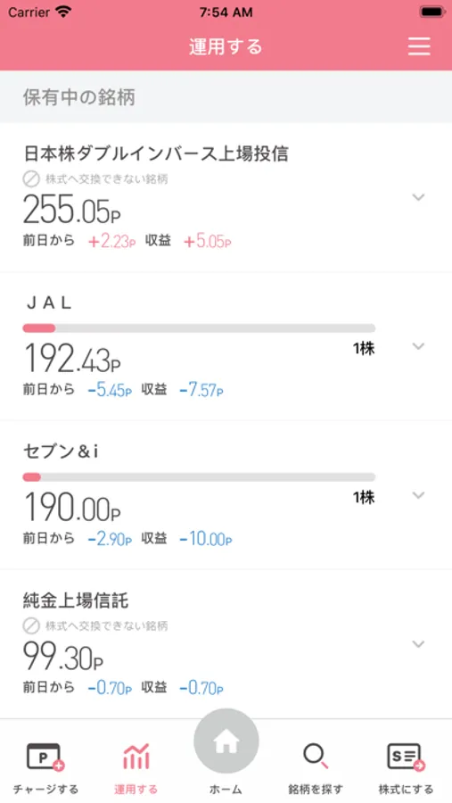選んだ銘柄の値動きに連動してポイントが増減し、本物の株式にも交換できるポイント運用サービスです。