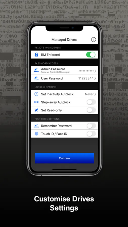The datAshur BT Admin app enables IT Administrators to provision and enforce user policies to help users better protect data that is stored on the drive.