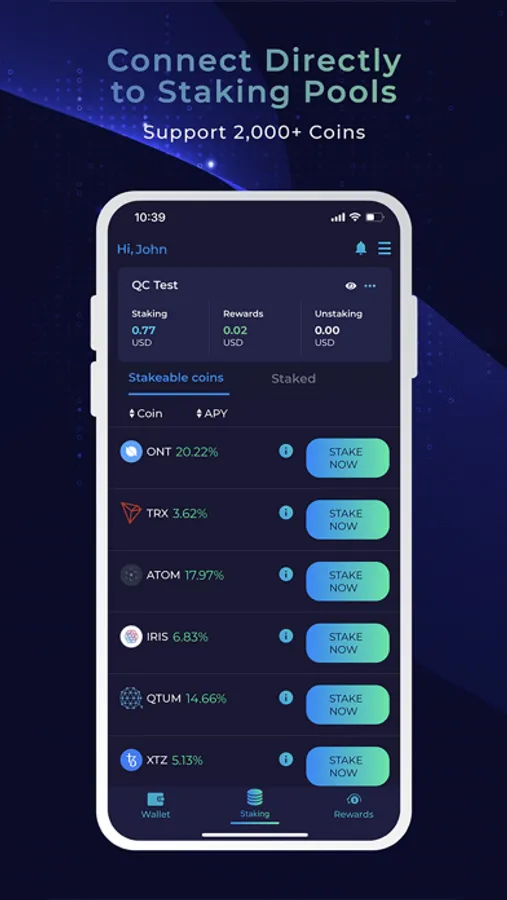 • Hit the mother lode. You can get generous rewards from staking 2000+ coins and tokens on different platforms, including BNB, EOS, Ethereum, and more.