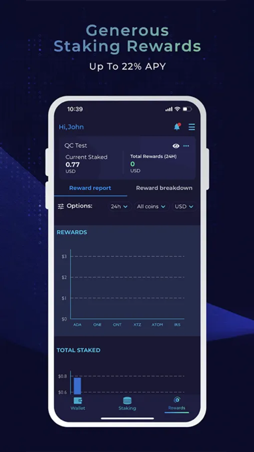 • Up to 22% APY is provided, depending on the crypto asset you stake.