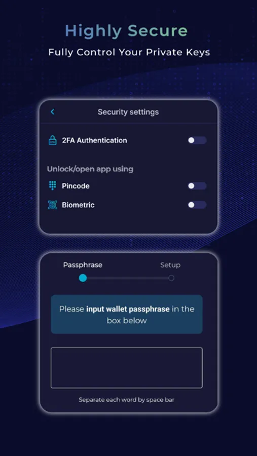 • Two-factor authentication (2FA) is used on Moonstake to ensure that your account is highly secure. Passphrase is required as a backup procedure to restore your wallet.