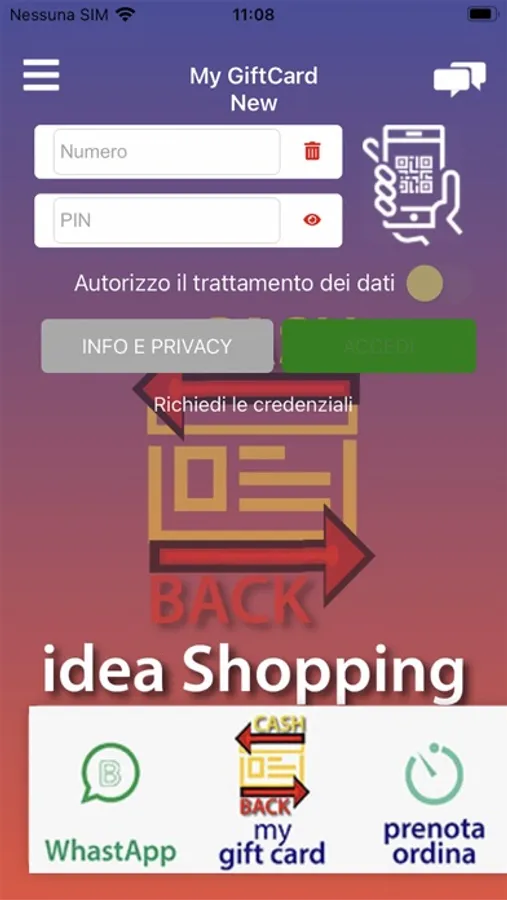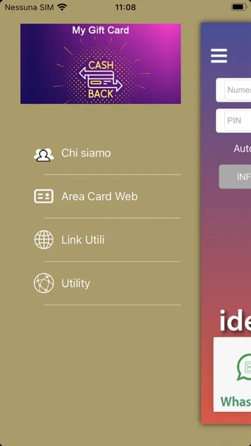 Sul retro della Card, sono riportati: ID, Numero Card e Pin che ti serviranno per configurare nell'App all'icona My Gift Card.