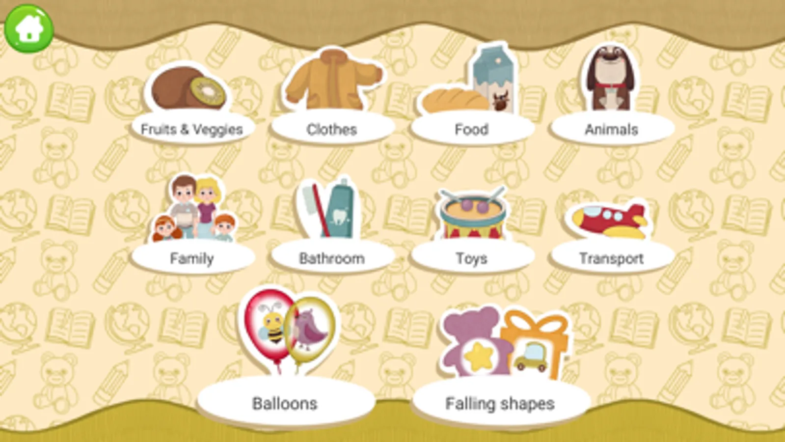 The application is designed to make sure little kids enjoy the game and learn new words in a fun way. The application was created with the idea of avoiding aggressive colors, the excessive use of blue and without distracting animations and sounds. The application is made in pastel colors using clear contrasting shapes to be ideal for young children. The application does not contain ads.