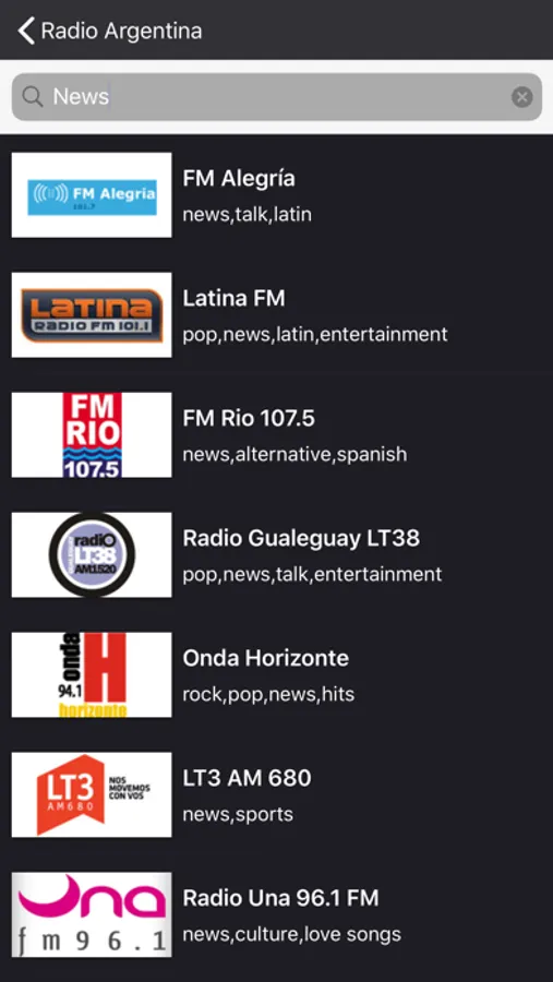 Our radio application allows you to listen live to all FM AM radio broadcasts and internet radio from Argentina. Choose what you want to listen to: news, sports, music and more!