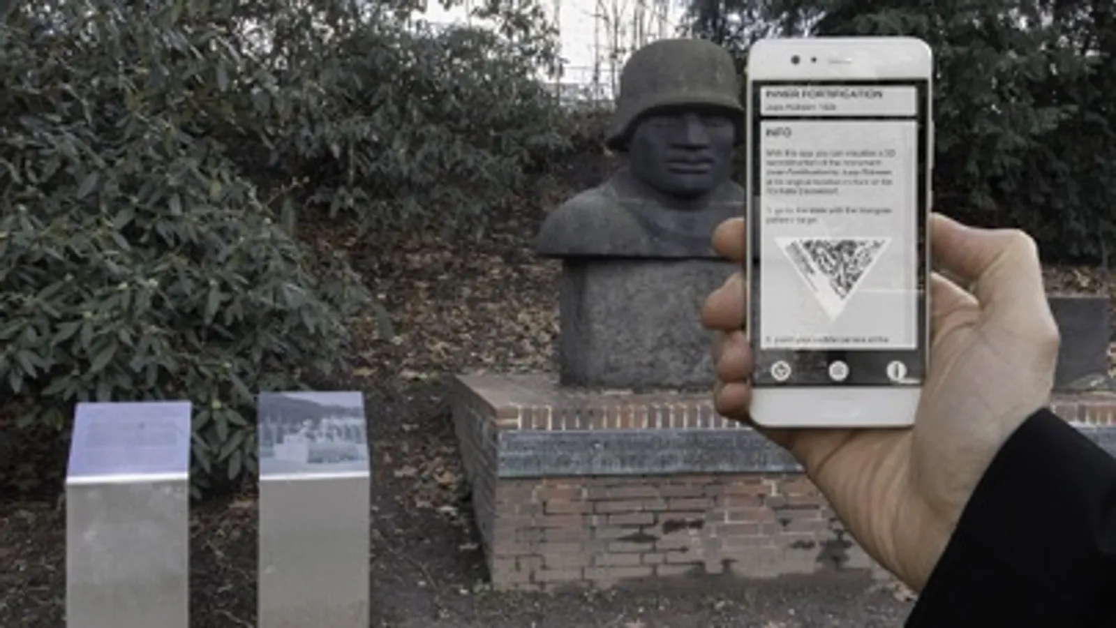 The app Düsseldorf Augmented lets you display 3D content in the city of Düsseldorf. It is designed to visualise public art projects, augmented reality artworks and historical reconstructions in public space.