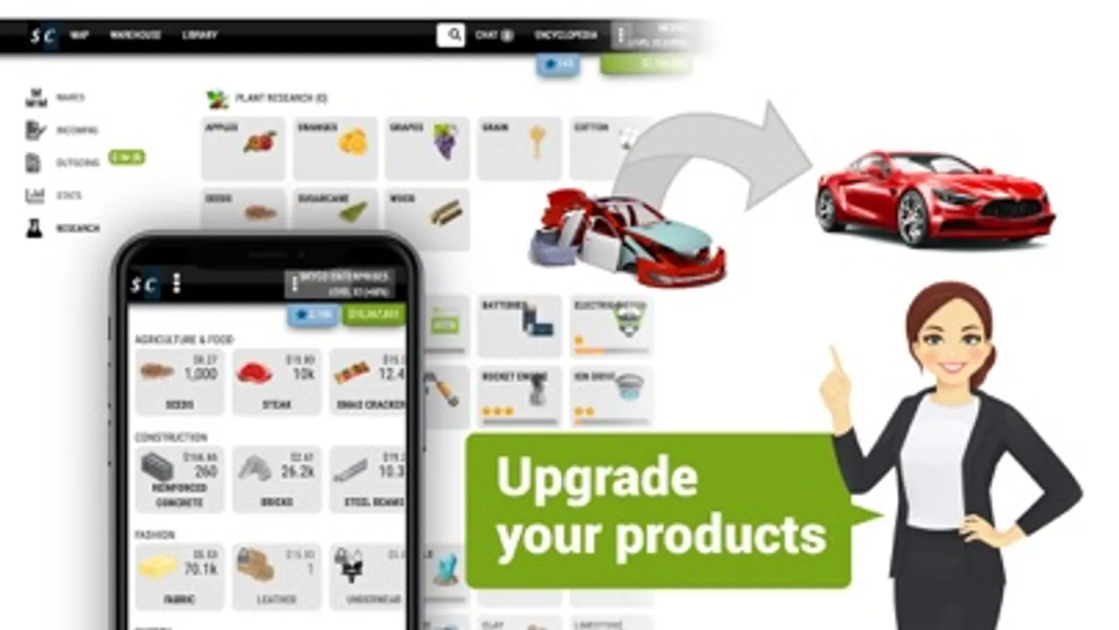 Sim Companies is an extremely versatile browser game, allowing you to experiment with diverse resources and to test your skills against other players. The game is a strategic business simulator, providing you with a lot of fun and experience managing a company by following real-world economic principles.