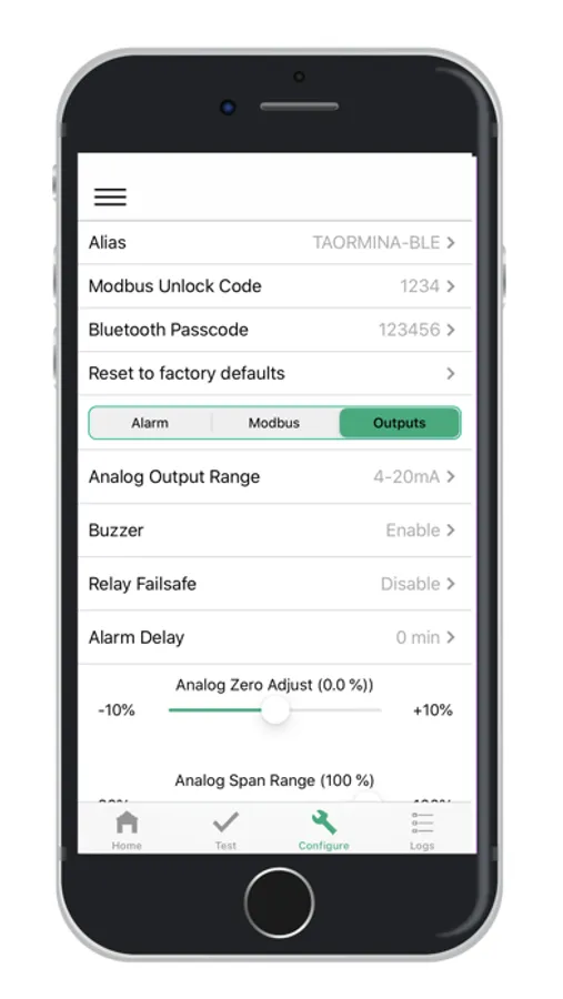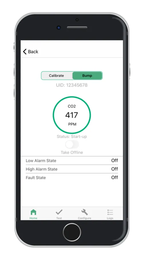 -Calibration (View sensor type, serial number and “Calibration Due” timer and initiate zero / span calibrations with customizable field calibration certificate.)