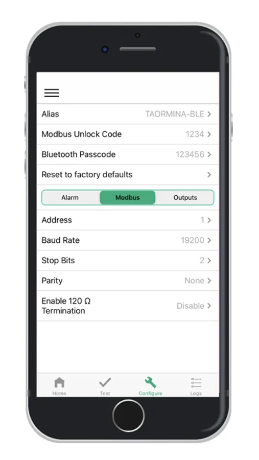 -Configuration (Rename device, define alarm thresholds, adjust Modbus settings, configure relay behavior and manage analog output settings.)