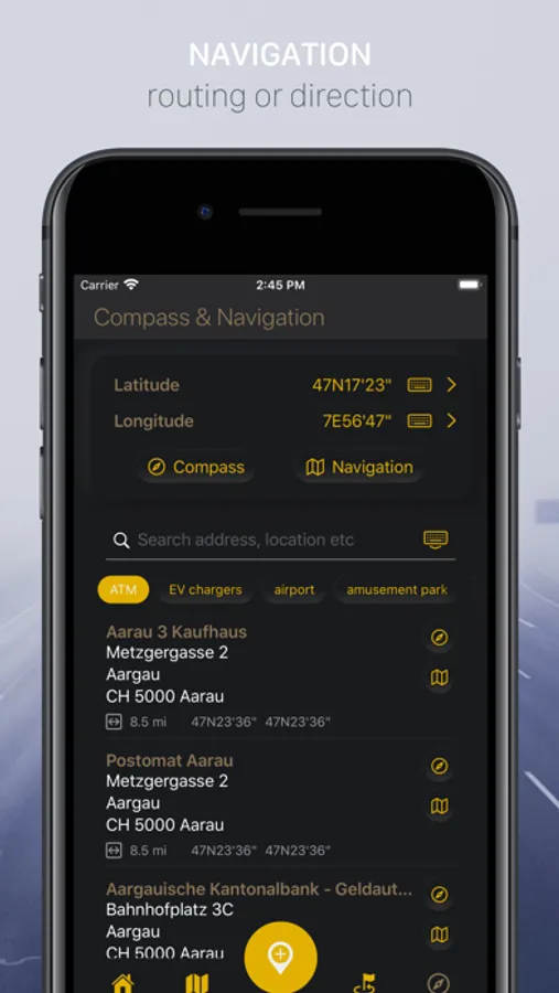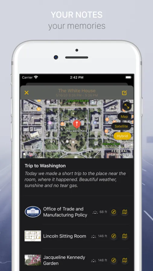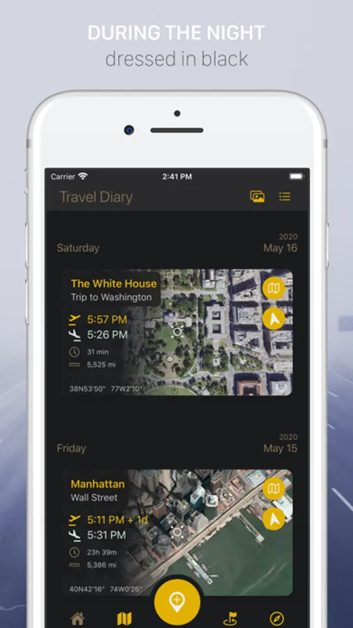 Well, Travel Diary offers you two ways to get to any place it shows you - regardless of whether it is a diary entry that was recorded for you in the background or a point of interest that you want in your area. Every location shown in the app has a button for a directional compass and for navigation.
