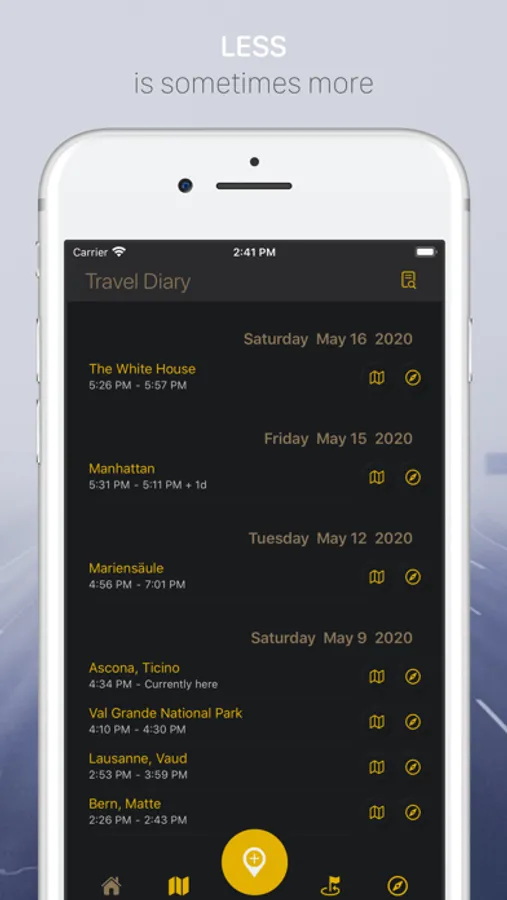Over time you will get a nice and informative travel diary. Only for you. Because the information will never leave your phone. At most on your Apple Watch. So you can always check where you've been hanging around since installing the app.