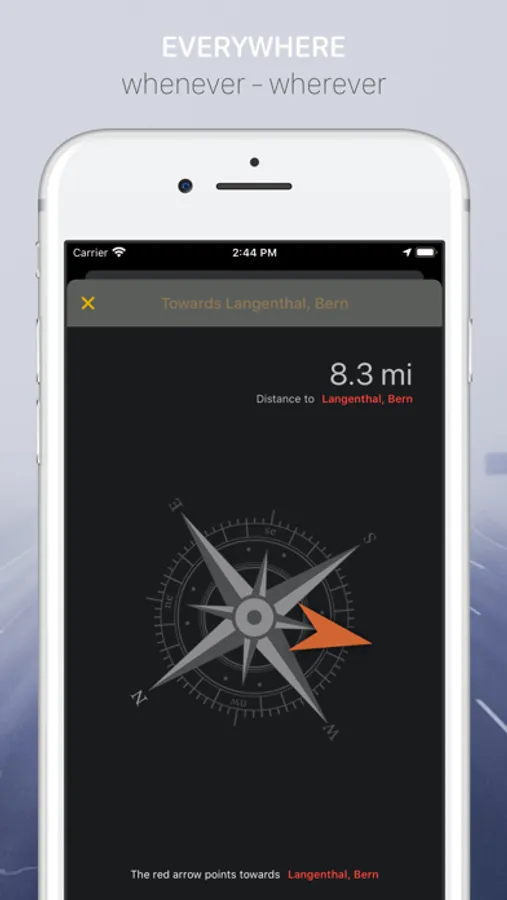 The compass determines the direction to this destination and displays a bright red arrow that points exactly to this location.