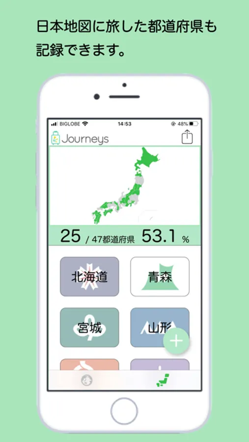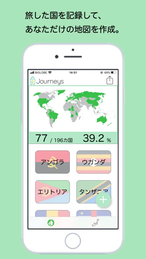 Journeysは、あなたが旅した国や都道府県を地図上に記録し、シェアできるアプリです。