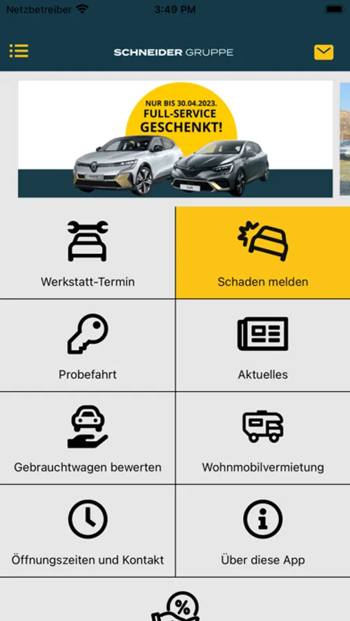Mit der App der Schneider-Gruppe erhalten Sie alle News und Informationen rund um unsere Autohäuser.