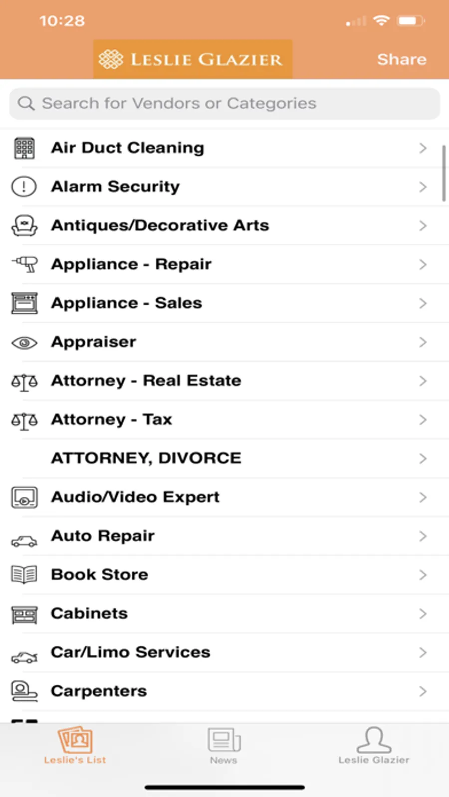 The Leslie Glazier app empowers his real estate business with a simple-to-use mobile solution allowing clients to access his preferred network of vendors and stay up to date with the latest real estate updates.