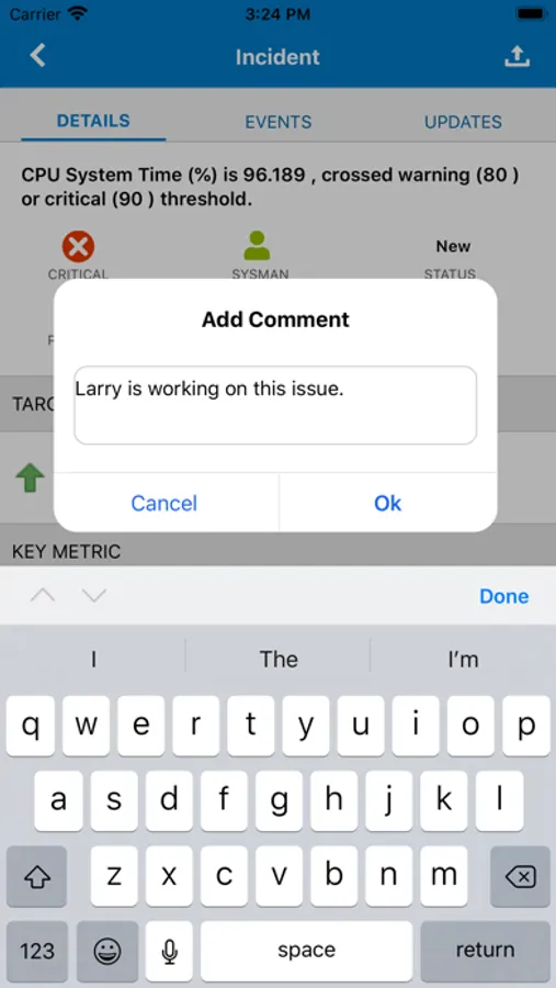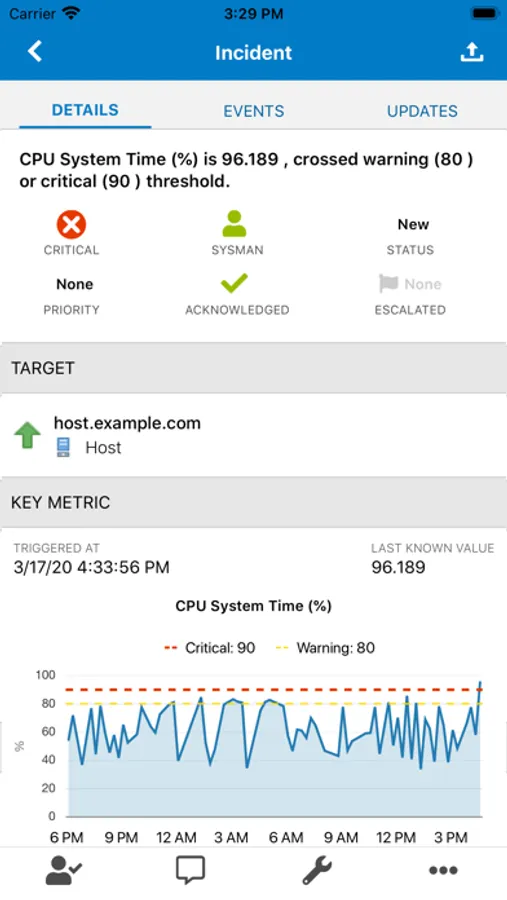 • Take actions on incidents and problems: assign, suppress, annotate or escalate