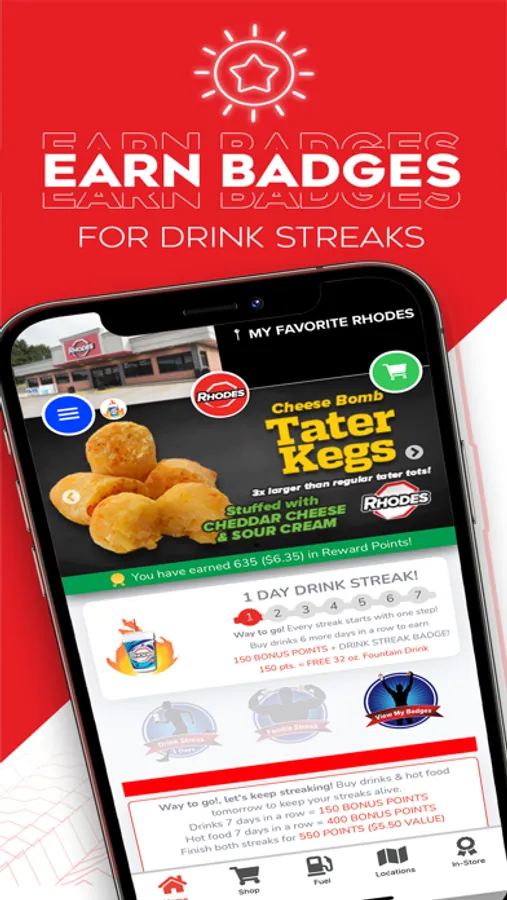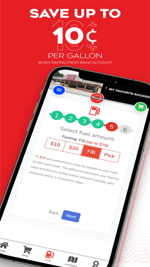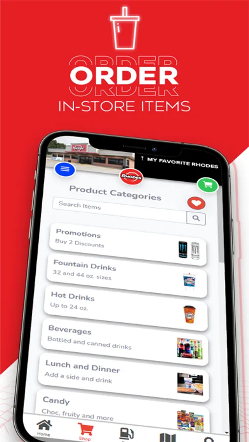 Welcome to the Rhodes app! Find location, order fresh food, use your phone for fueling, and access discounts and rewards.