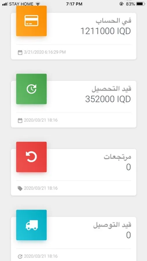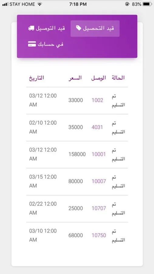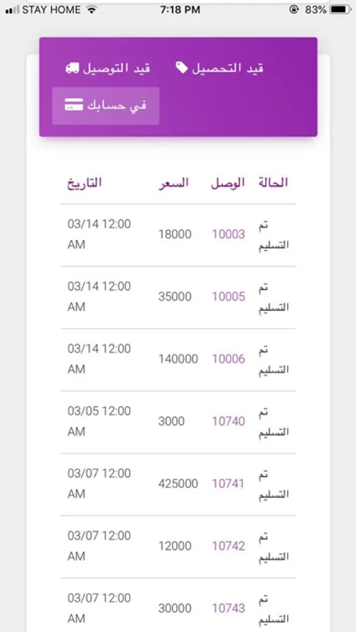 من اوردرات قيد التوصيل او تم تسليمه .. الخ.