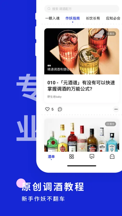 行业标杆级「酒单编辑器」,记录调酒心得上传鸡尾酒作品,打造个人调酒品牌。