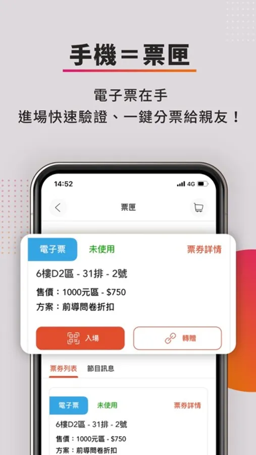 ▸ 手機就是票匣,隨身不忘、快速驗證、電子票一鍵分票