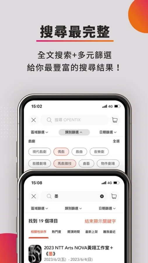 戲劇、音樂、舞蹈、親子、展覽、電影、活動/學習、商品、演唱會、音樂劇...比你想像的多更多!