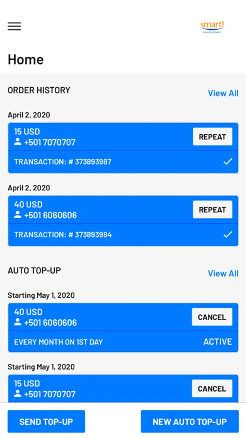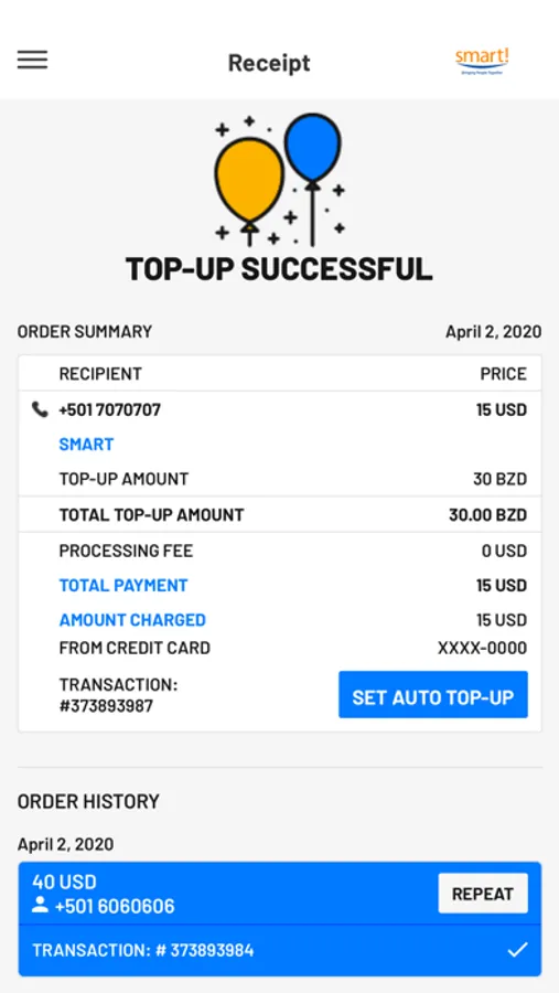 • Quickly Repeat Your Last topup - Single touch "Repeat topup" option lets you send to the same phone number with the same amount instantly.