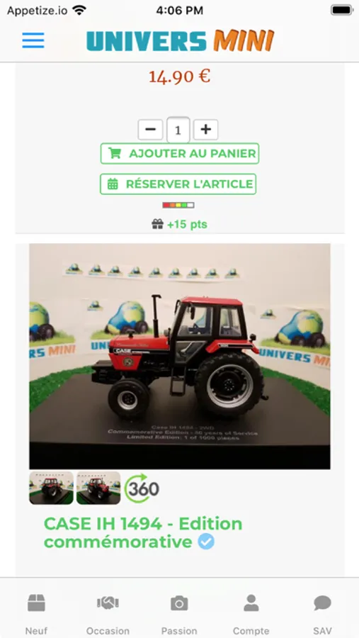 - Univers Occasion : achetez/vendez vos miniatures agricoles en toute sécurité.