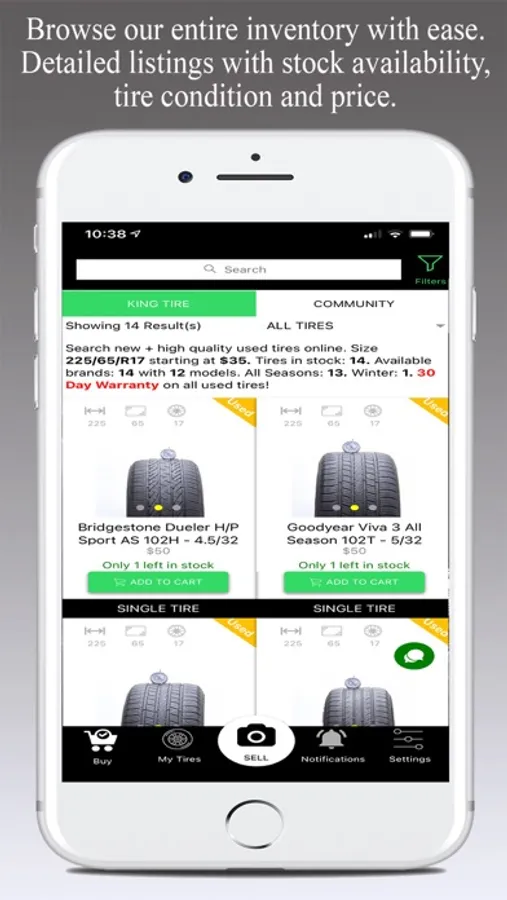 What separates us from from other apps and websites such as Let Go, Offer Up, Craigslist, and Facebook Marketplace is that we warranty EVERY USED TIRE purchased through the app even if it’s not ours. Now buyers can shop with confidence and have peace of mind when purchasing tires online!