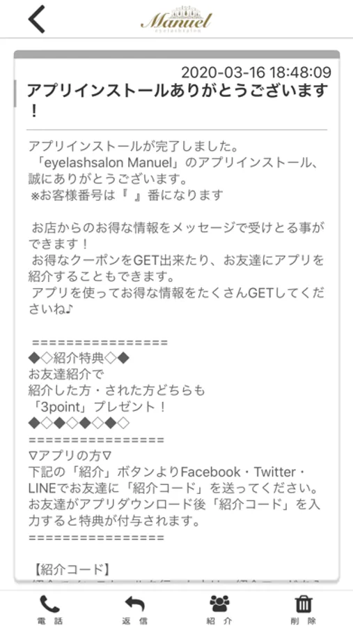 ManuelのアプリをSNSを通じてお友達に紹介する事ができます。